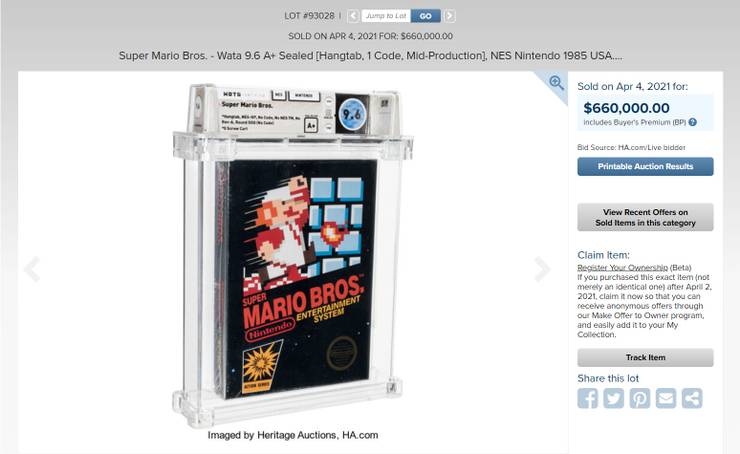 A un precio enorme de $ 660,000, una copia sellada del Super Mario Bros. original es ahora el videojuego más caro de la historia. La copia casi en perfecto estado del clásico juego de plataformas de Nintendo se puso a subasta en marzo , donde su valor alcanzó rápidamente cientos de miles de dólares en cuestión de días.